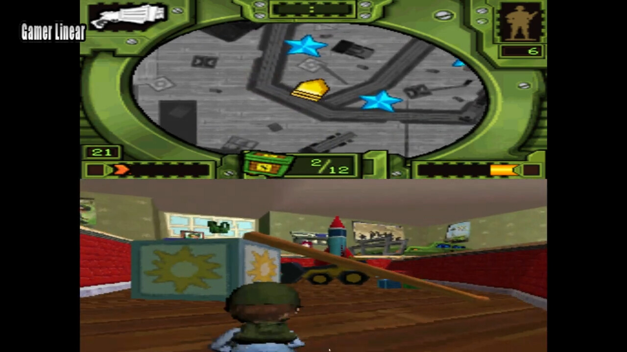 One thing I remember playing a lot was Army Men: Soldiers of Misfortune. It was a third-person shooter on the DS, and I recall just enough of it to say that it’s probably one of the worst games I’ve ever played. But it was my first — and for a long time, only — exposure to the concept of an “explorable” environment in a ““3D”” game with an “““immersive””” camera. A dream wrapped in a nightmare. Look at this shit.